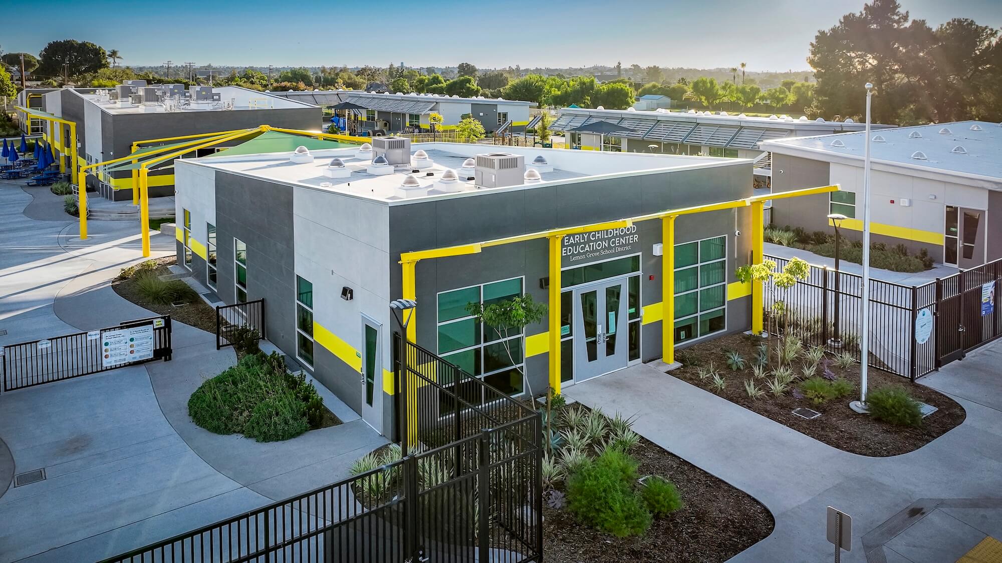 The Lemon Grove Early Childhood Education Center transformed early learning, creating a custom Pre-K-to-K modular village that connects eight GEN7 classroom buildings, indoor/outdoor learning areas and shared library and admin buildings in a 26,880-SF residential-style community.