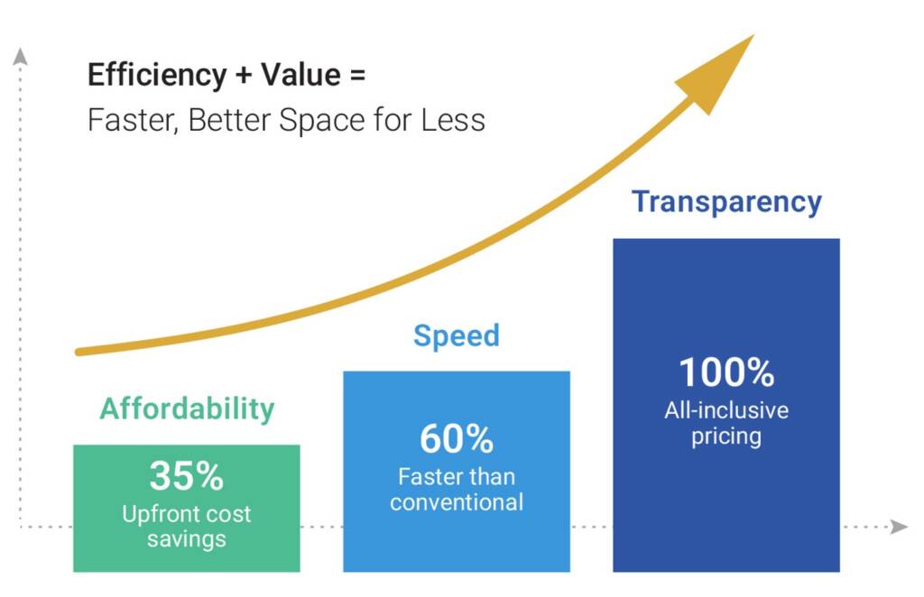 Conventional construction methods are inefficient, taking years to design and construct buildings that community colleges need now. Students’ immediate needs go unmet, and campus life is disrupted by onsite construction that interferes with classes and campus activities. Noise, air pollution and traffic increase, creating health and safety risks for college students who’re on campus day and night year-round.